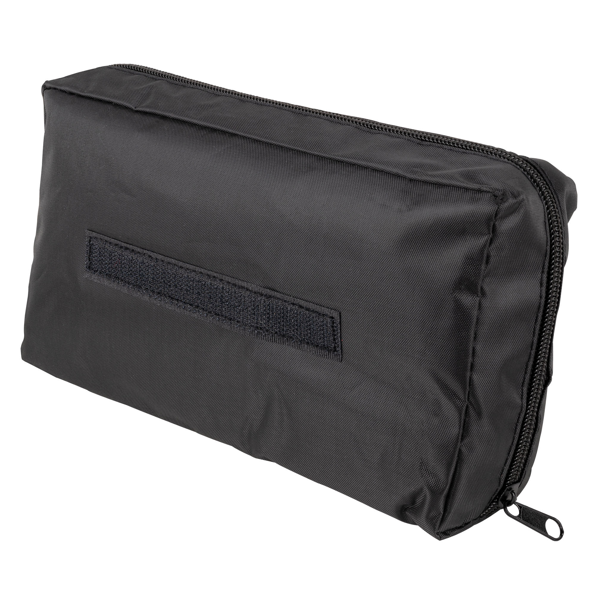 Kit de primeiros socorros compacto, ideal para o carro e fácil de transportar, vem numa bolsa com zíper e velcro na parte traseira.