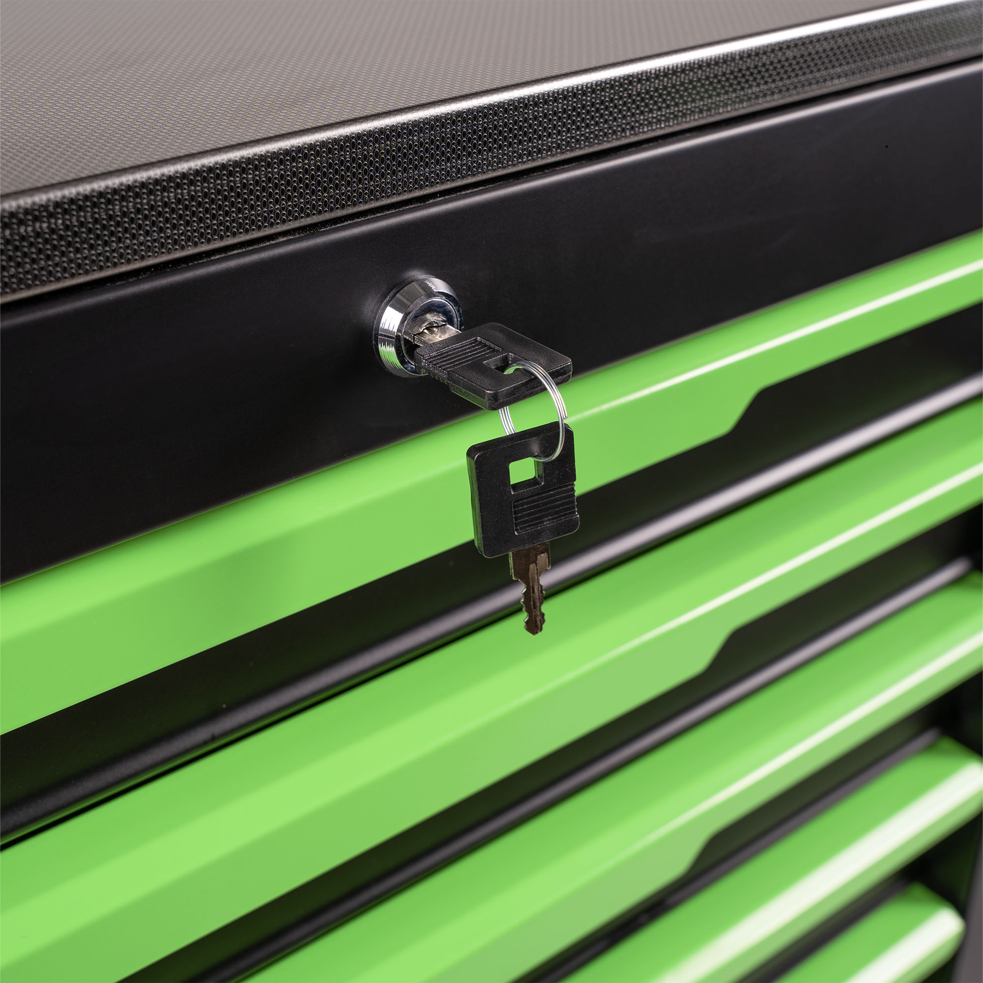 4. Tampo de trabalho em aço inoxidável de 18 mm e tapetes de gaveta de 2,5 mm