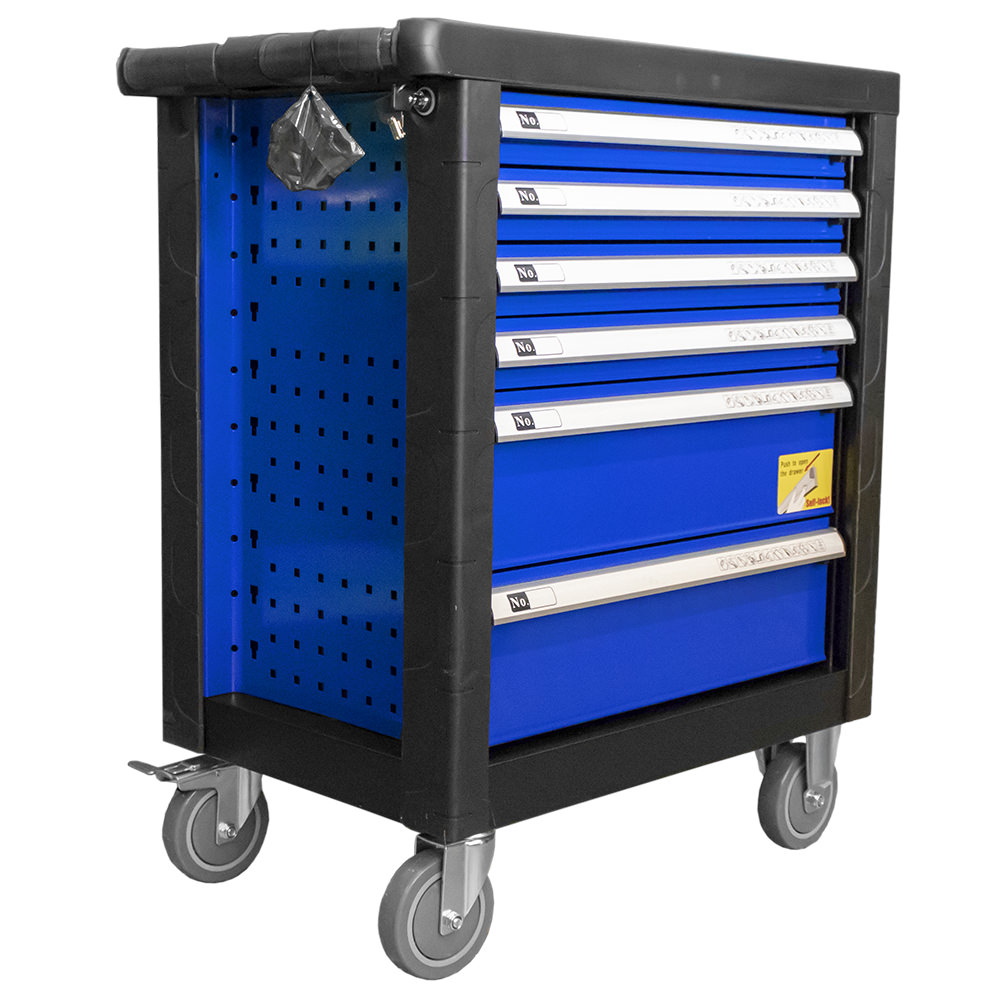 Carrinho de ferramentas de 6 gavetas azul com equipamento