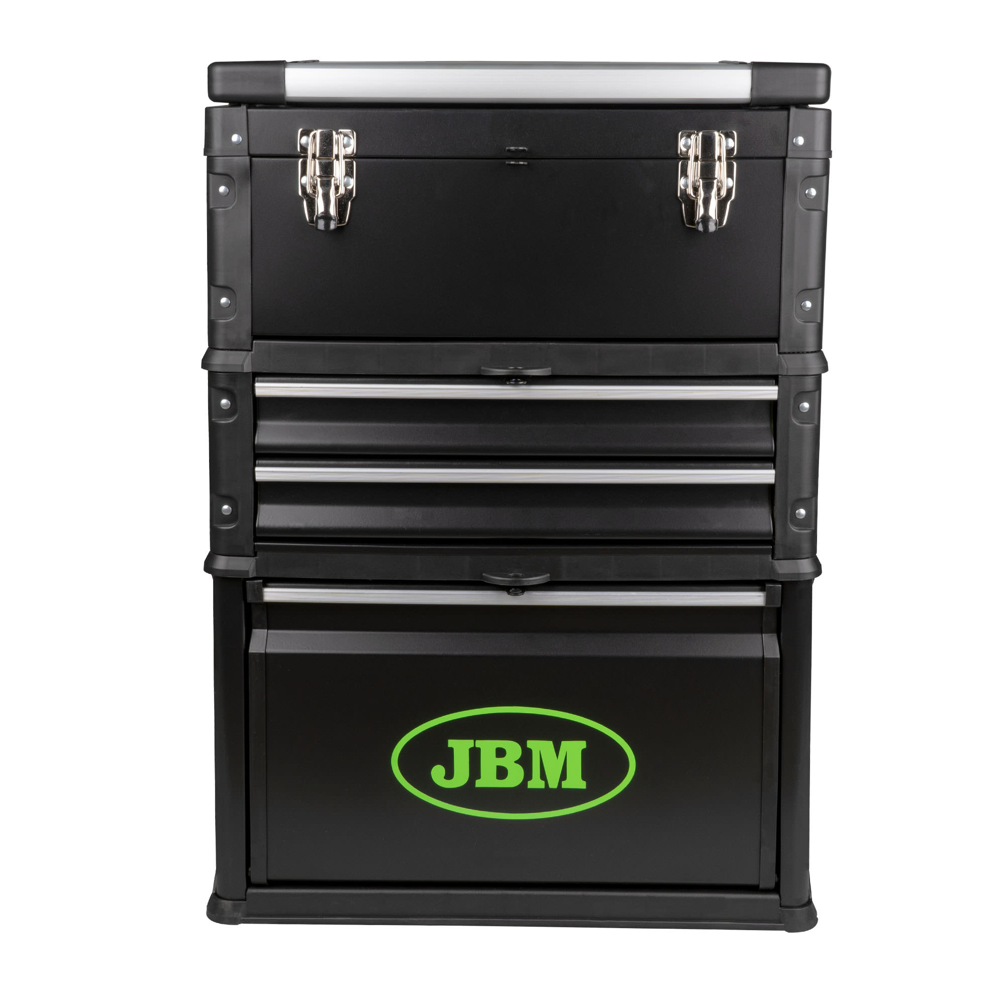 Este carrinho, concebido em 3 módulos, é composto por 1 porta-bagagens + 2 unidades de gavetas + 1 gaveta rebatível. Os diferentes módulos têm uma grande capacidade e um design ergonómico que integra um carrinho como porta-paletes, facilitando o transporte de uma grande quantidade de ferramentas.