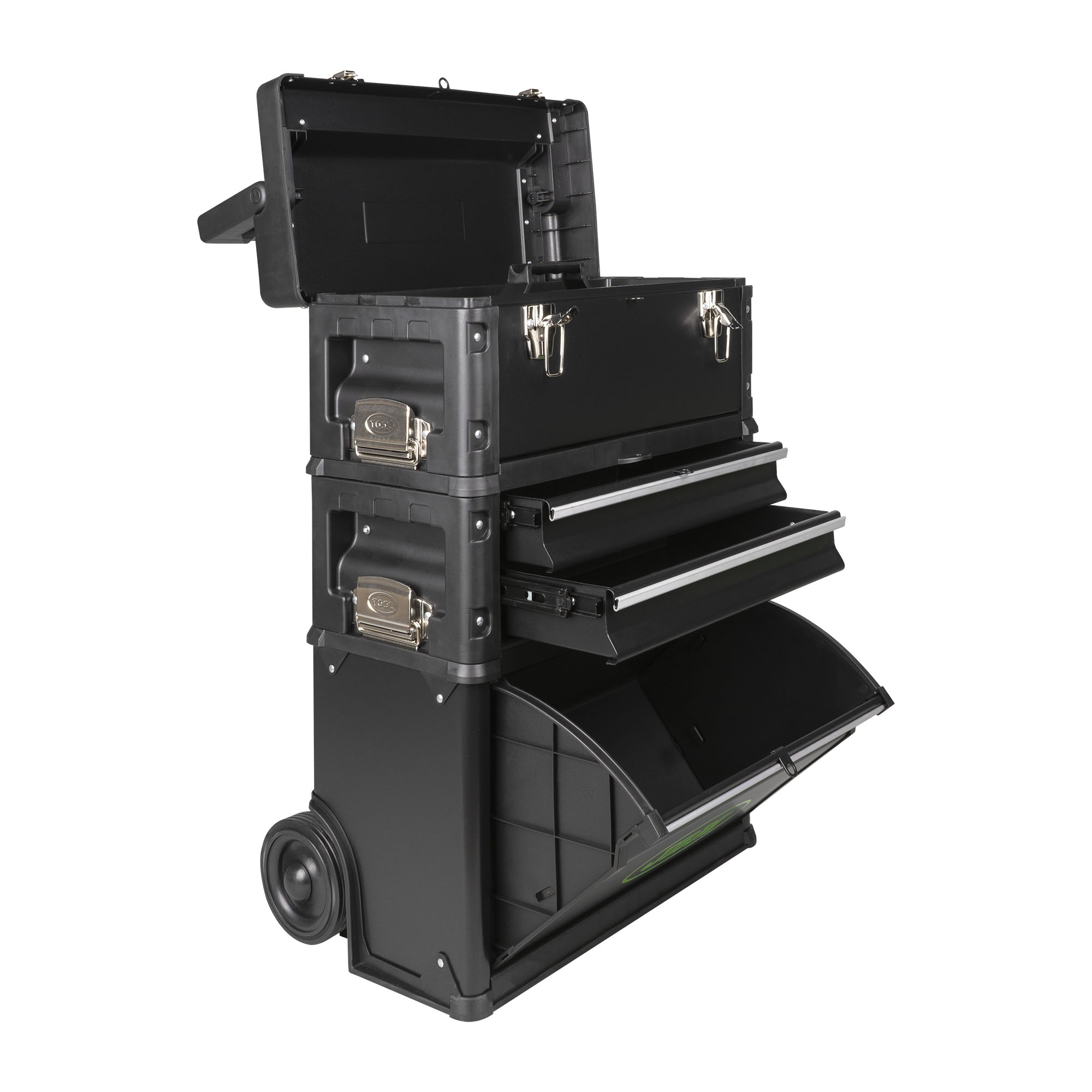 Este prático e versátil carrinho de ferramentas foi projetado para oferecer uma solução de armazenamento eficiente e fácil de transportar. Com três compartimentos removíveis e separáveis, permite organizar e acessar rapidamente todos os tipos de ferramentas, seja de forma individual ou combinada. Seu design robusto e funcional, juntamente com a possibilidade de bloqueá-lo com um cadeado, torna-o uma opção ideal para oficinas e espaços de trabalho que exigem organização e segurança.