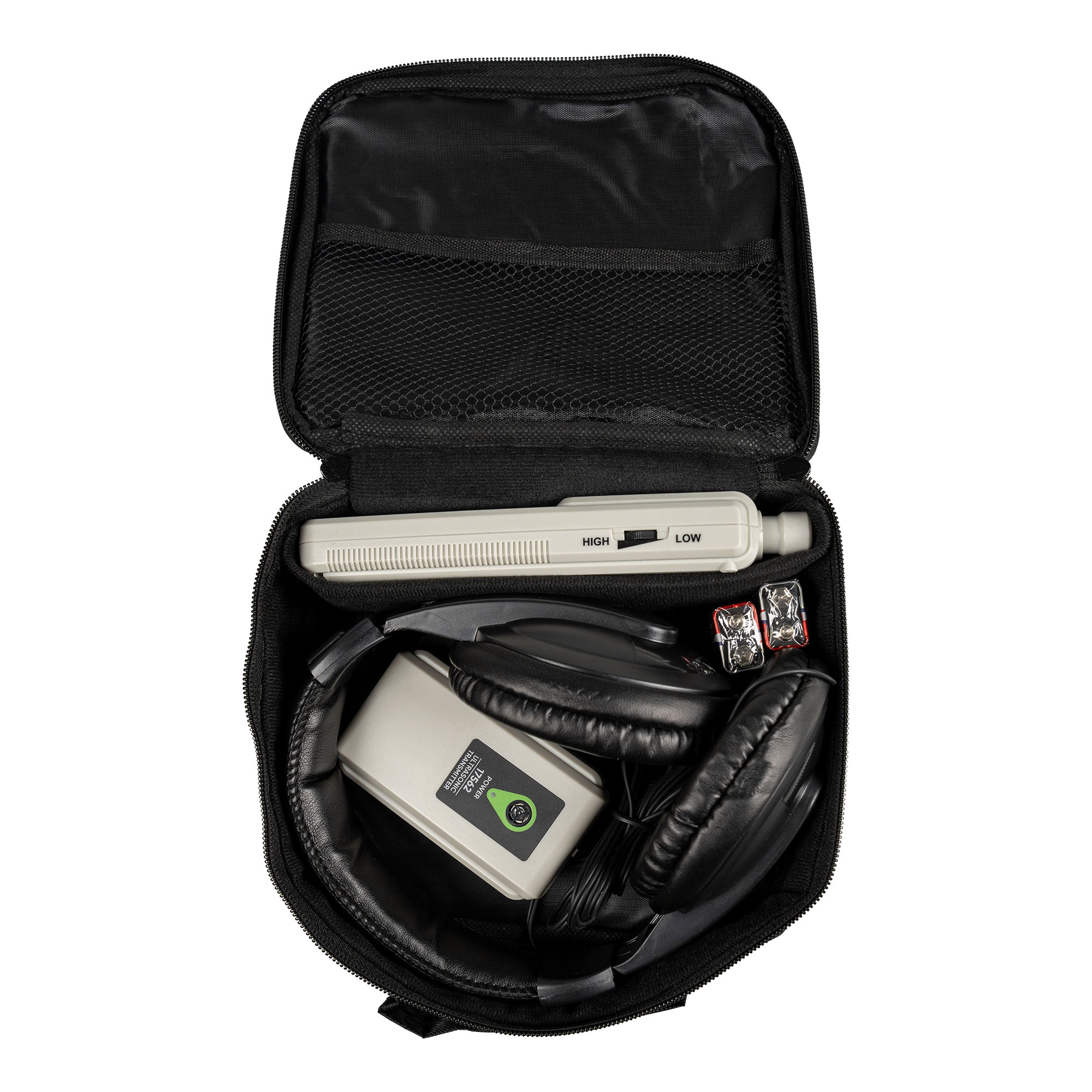 Um detector de vazamentos ultrassônicos detecta a emissão de som de alta frequência produzida por vazamentos em sistemas fechados, como tubos e equipamentos. Este dispositivo converte ondas ultrassônicas em sinais audíveis, permitindo a localização precisa do vazamento sem contato direto. É útil em aplicações industriais para manutenção e reparo.