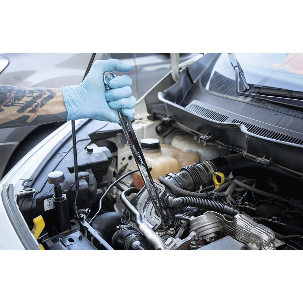 Este conjunto de chaves com trinquete extra-longas é ideal para completar a sua coleção de ferramentas ou para preencher a sua caixa de ferramentas ou carrinho de ferramentas portátil com acessórios. O seu design permite um alcance superior e facilita o trabalho em áreas de difícil acesso.